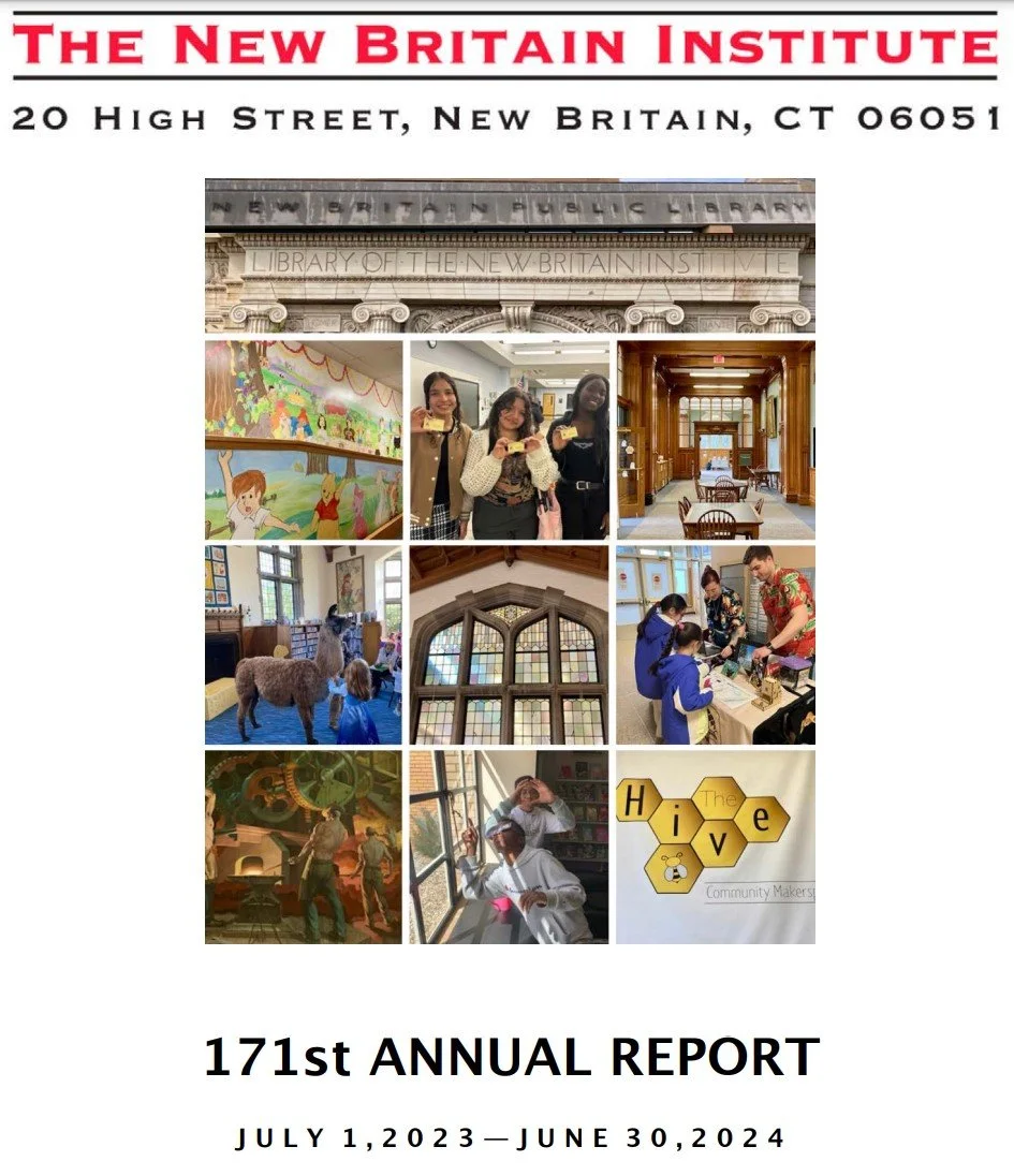 The New Britain Institute is the parent organization of the New Britain Public Library, the New Britain Youth Museums, and the New Britain Industrial Museum. The Institute has been serving Connecticut since 1853.